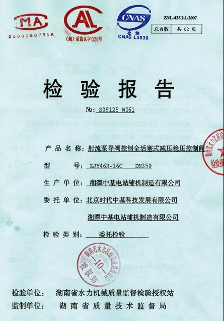 • 水力機械質量監(jiān)督檢驗報告