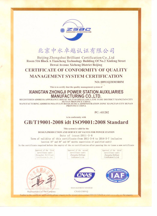 • 質量管理體系認證證書